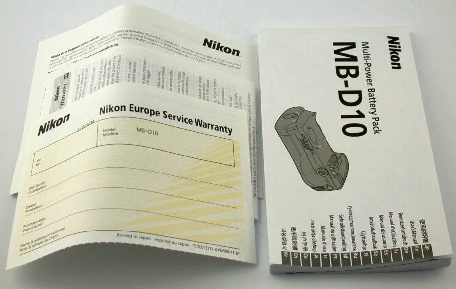 MB-D10 dolazi sa šaržerom MS-D10EN, koji omogućuje napajanje sa Nikon EN-EL3e Li-ion punjivim baterijama (prodaju se zasebno).
