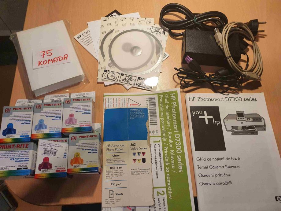 originalni HP photo papir dimenzija 100x150mm (75 komada); originalne CD naljepnice za printanje;