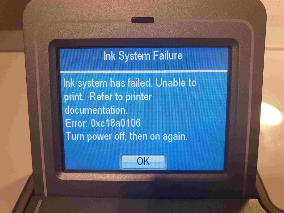 Printer se godinama nije koristio i javlja INK error 0xc18a0106 iako su stavljene nove kazete.