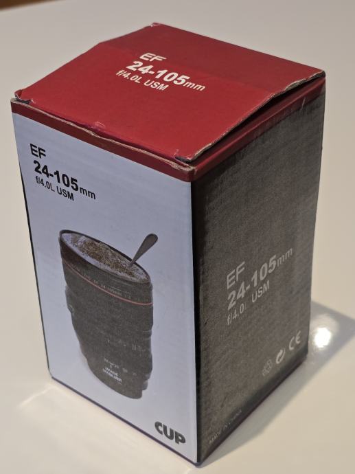 Prodajem šalicu u obliku foto objektiva Canon EF 24-105mm. Šalica je s detaljima koji vjerno imitiraju izgled pravog objektiva, uključujući oznake žarišne duljine i poklopac koji podsjeća na pravi objektiv poklopac. Dolazi u originalnoj kutiji. Idealna za ljubitelje fotografije i zanimljiv dodatak za kavu ili čaj.