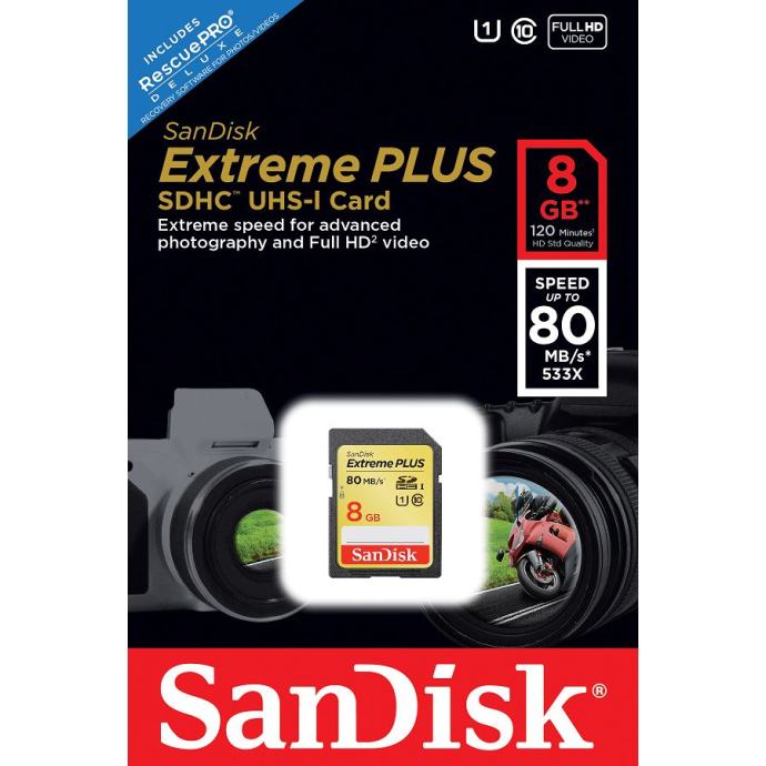Sandisk Extreme Plus SDHC 8GB, 80MB/s UHS 1, C10 SDSDXS-008G-X46