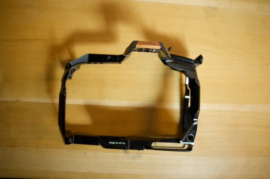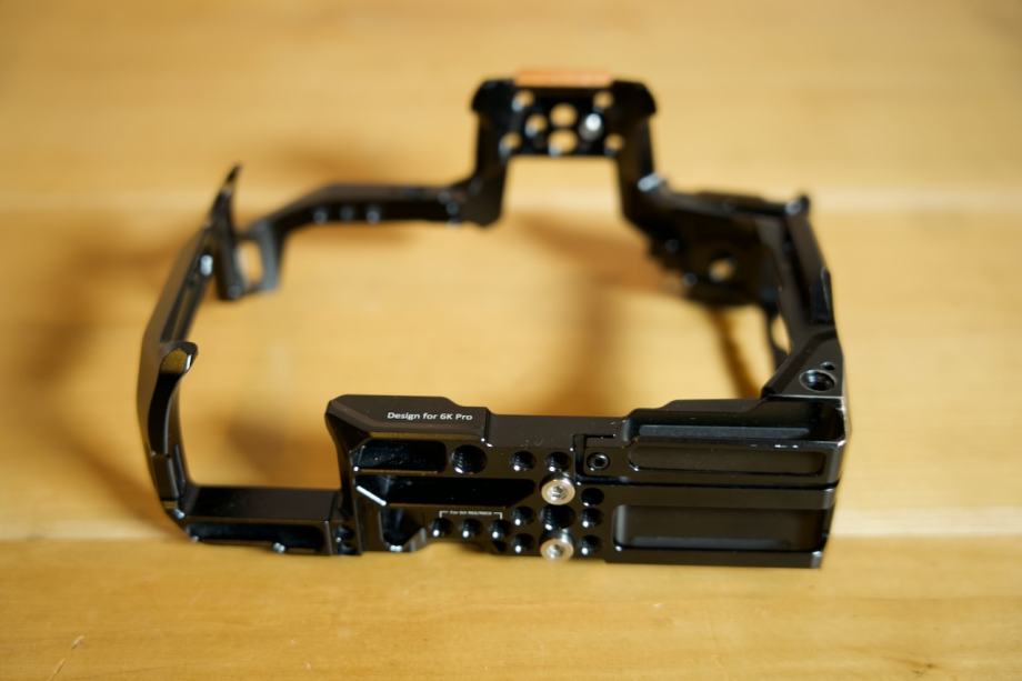 Form-fitting cage for BMPCC 6K Pro/6K G2; disassembled to become a half cage.