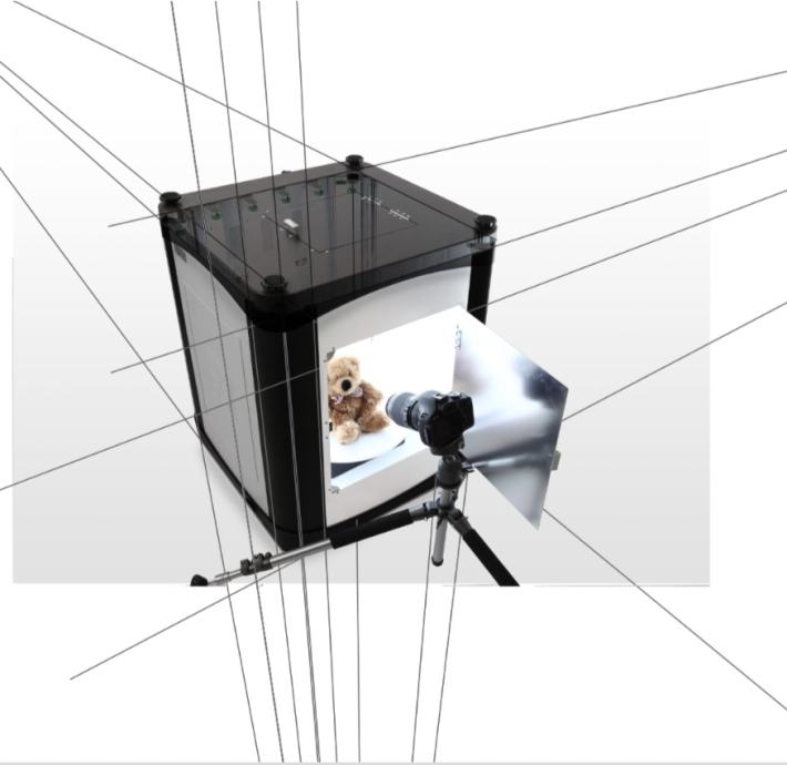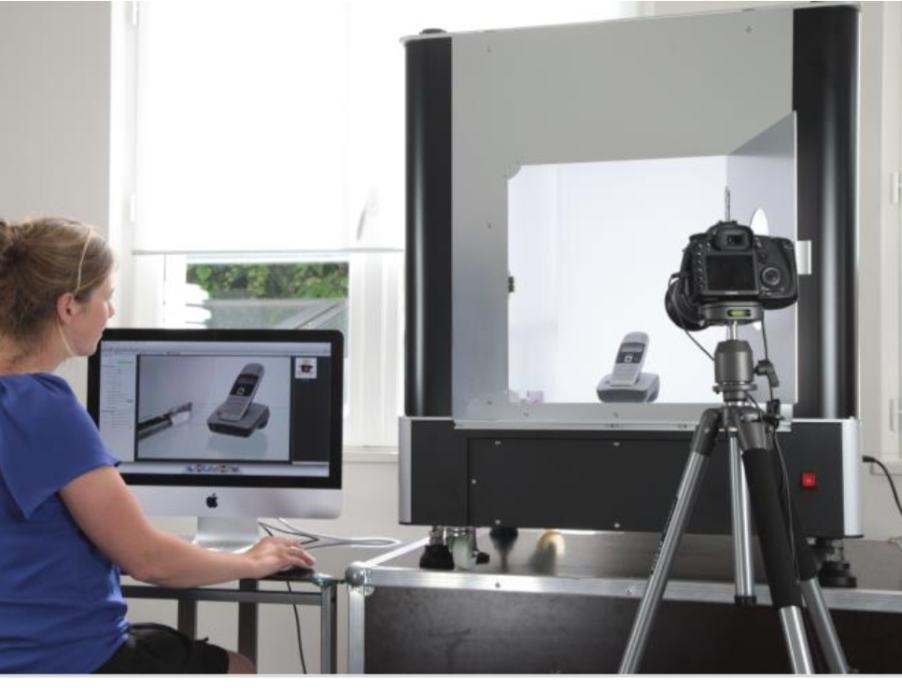 Uređaj za fotografsko snimanje, 360 kružo, visoke rezolucije. Idealno za kompanije koje prodaju proizvode poput dekorativnih predmeta, obuće, naočale, igračke, cipele, farmaceutske proizvode, posuđe. Svjetlo je homogeno raspoređeno. Mogućnost persolizacije pozadine. Automatsko oblikovanje slike (cropping).