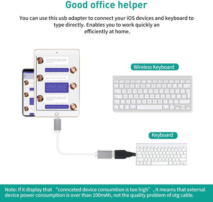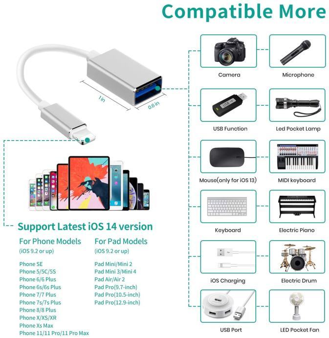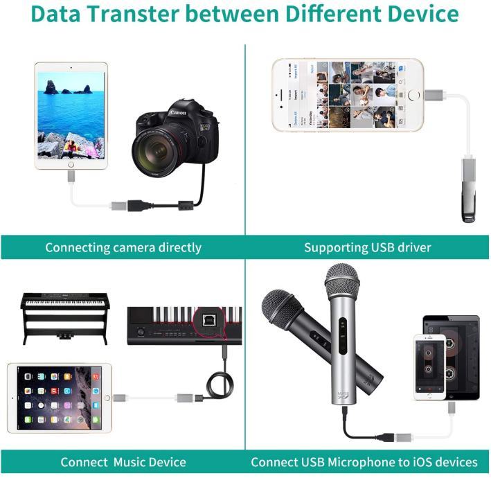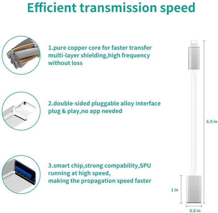 Široko kompatibilne i podržavaju periferne uređajeOvaj otg kabel kompatibilan je sa svim OVER iOS 9.2. I podržava periferne uređaje: digitalni fotoaparat, usb flash pogon, miš, slušalice, midi tipkovnice, mikrofon, električni pano, mikser, audio sučelje. Ali ako nadogradite svoje iOS uređaje na najnoviji iOS 13, otg adapter podržava usb flash pogon i miš. s USB 2.0 brzinom, 14MB/S - 16MB/S.