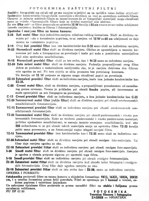 Također u ponudi su i tamno zeleni filtri za kolor postupak i razvijanje CB negativa.