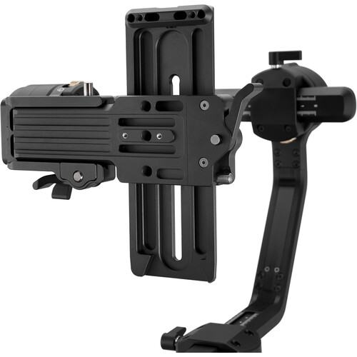To support a collaborative process, the CRANE 2S offers dedicated mounting points for attaching an optional Zhiyun-Tech TransMount transmitter. Another new feature, integrated to support the growing demand for social media content, is a vertical quick release mount that enables you to set your camera up vertically. Besides this, a new FlexMount system is used for mounting your camera the standard way. This technology simplifies the mounting and setup process while securing your camera with a double-safety mechanism. The axis-locking mechanism for balancing a camera has also been improved with a two-phase locking design. The axis-locking mechanism additionally ensures that there's no movement of the gimbal components during travel or storage.
