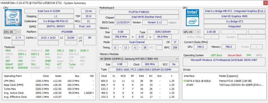 Fujitsu Lifebook E752 Intel Core i5-3230M 8GB RAM