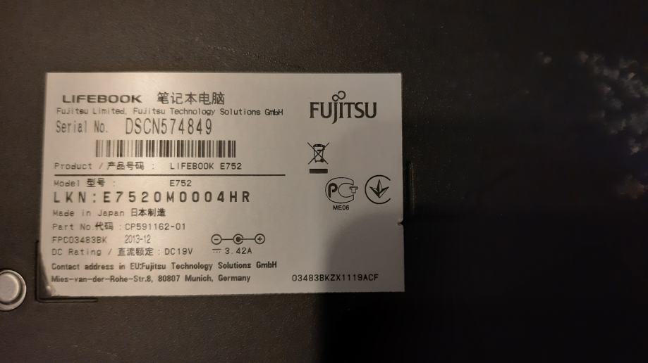 Prodajem laptop Fujitsu LIFEBOOK E 752, Diagonal Size15.6 in