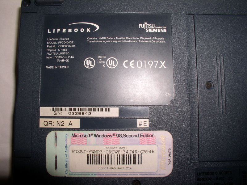 Windows 98 SE instaliran i posjeduje licencu na poledini
