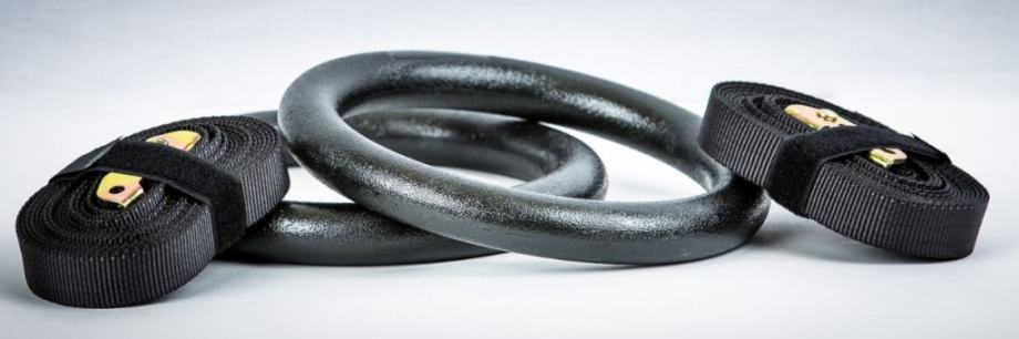 Olimpijski gimnastički obruči za vježbanje Gym Rings - imaju priložene trake dužine 4,5 metara. Trake imaju čeličnu sponu, sa kojom namještamo dužinu po mjeri. Sa vježbom na olimpijskim obručima trenirate podizanje trupa, sklekove, pull up-se u dip-se na razini primjerenoj vašoj snazi. To je također odličan način vježbe trbušnih mišića. Vježba sa visenjem razvija funkcionalnu moć i bolje ravnoteže. Zbog nestabilnosti prilikom vježbanja, tijelo mora viti »napeto«, bar većina mišića na tijelu, kako bi ga vratilo u ravnotežu. Krugove – obruče možemo pomicati lijevo i desno te gore i dolje, okrećemo zapešća te angažiramo puno tjelesnih mišića. Trake možemo pričvrstiti na različite strukture kao što su grede, prečke, drveće, sprave za penjanje u prostorima za vježbanje ili parku, doma u vrtu ili garaži.Vanjski promjer obruča: 23 cmUnutarnji promjer obruča: 17 cmDužina trake: 4,5 cmŠirina trake: 2,4 cm