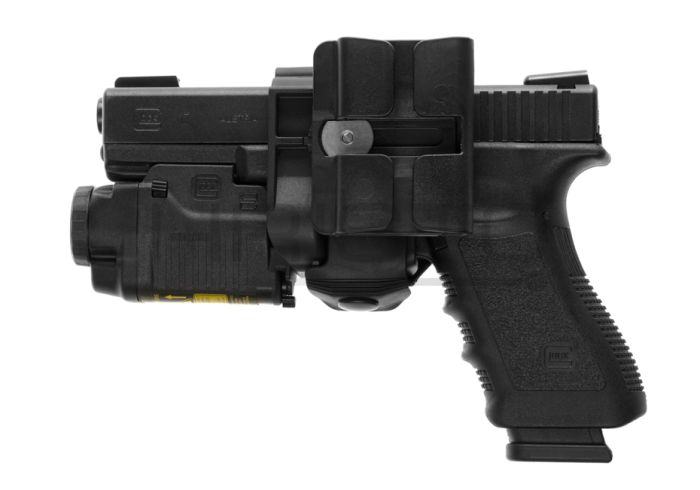 Introducing the GunClip, an entirely new approach to carrying and deploying a handgun. Any light, any suppressor, any platform, any orientation, any situation. Even if you acre in a cramped vehicle or wearing an armored vest with a gun on your belt, the GunClip allows you to deploy your handgun and get on target. Fast. And its small size means minimal weight and space is taken up when not in use. A single adjustment sets rotation (360 degrees) and securely clamps the mount to almost any platform (belt or MOLLE). Fits belts up to 2 inches tall. Currently available for all Glock 17, 19, 22, and 23 pistols. Right hand mount. Other models available soon. Patents pending. Made in US from US materials.