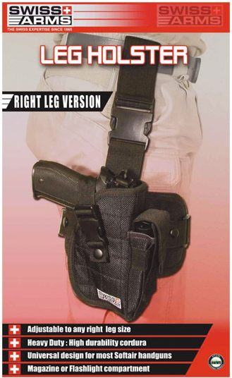 Swiss Arms crna futrola za desnu nogu izrađena od Cordure. Odgovara većini pištolja standardne veličine (1911, Glock, SIG 226/229, Beretta 92 itd.).