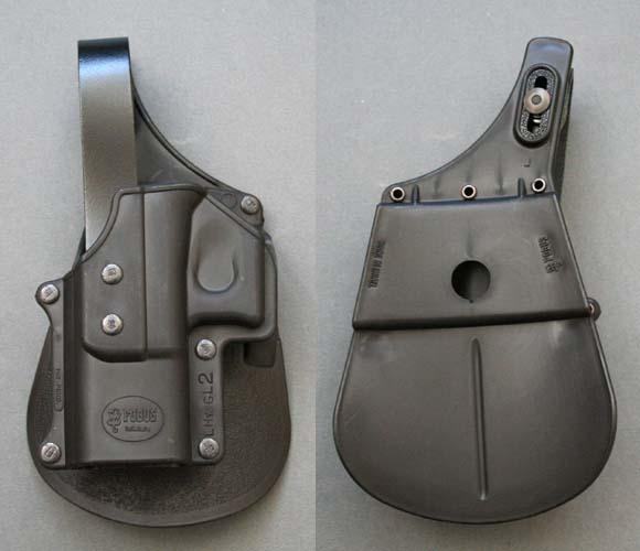 Vrhunski holster izraelske tvrtke Fobus, namijenjen Glock (17, 19, 23, 26, 34) pištoljima. Model za ljevake ! Jednostavno se pričvršćuje na remen (uski ili široki). Posjeduje protukliznu podlogu koje sprječava pomicanje duž remena. Futrola dolazi sa sigurnosnim kožnim remenom s kopčom (tzv. thumbbreak).