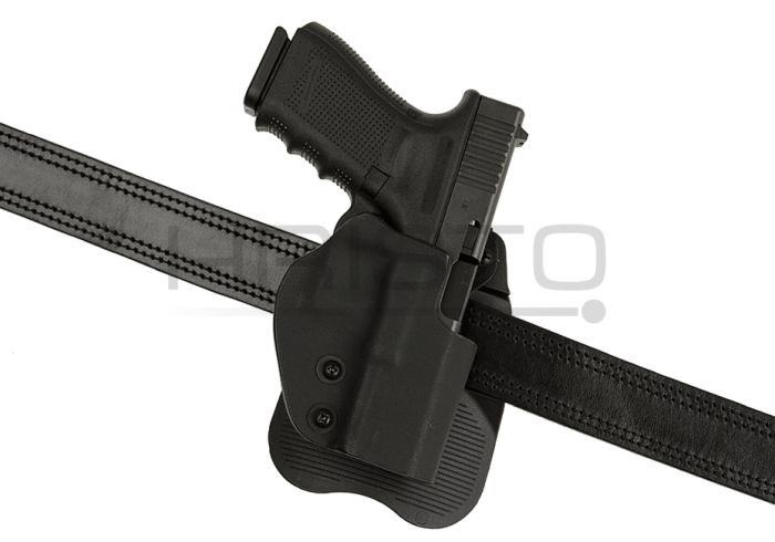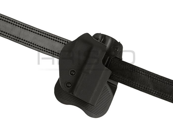 The paddle is connected to the holster by two screws, offering you the option to change the carrying angle according to your needs. Thanks to the 6 holes this paddle offers, you are able to adjust your holster in different cant angles to forward backward - from vertical carrying to cross draw position. With this paddle, your holster is stable and steady: The bottom of the paddle is rugged to keep the holster in place, the two jags hold it on your belt and the "window" enables you to insert your belt via your pants loop into this window while carrying the paddle holster outside your pants. Whether you choose to carry the paddle in your pants or outside u2013 you get the best possible options for carrying your paddle holster.