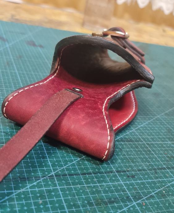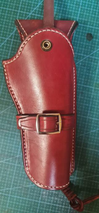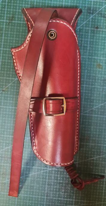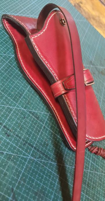Futrola za revolvere .357 magnum, .38 special bilo kojeg proizvođača, dužina cijevi 6". Prava visokokvalitetna koža, boja kesten, bijeli konac, sve ručno rađeno. Cijena + poštarina.