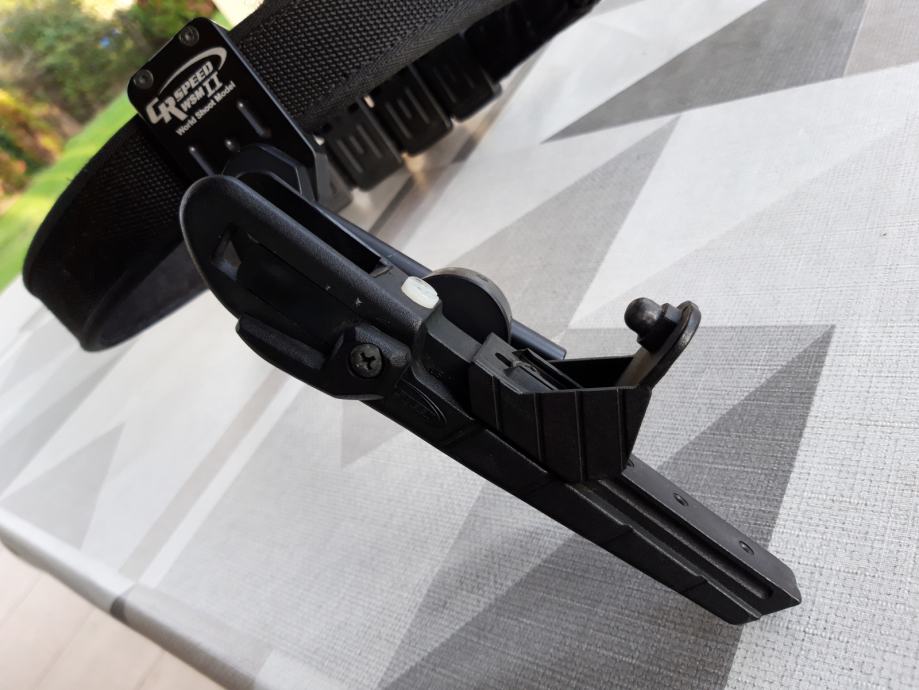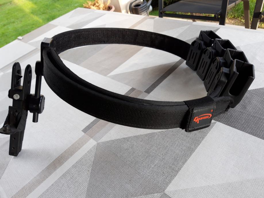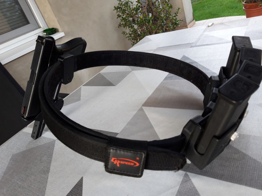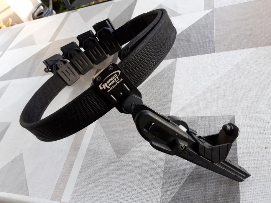Prodajem holster za IPSC, marke CR Speed, model WSM 2, za dešnjaka. Uz holster ide opasaš sa podopasačem i 4 kom. nosača za rezervne spremnike. Sve je CR Speed. Opasač je dugačak 140 cm. Holster je namjenjen za pištolje tipa Glock, XDM i slično, i podesiv je po visini i kutevima, kao i nosači spremnika.