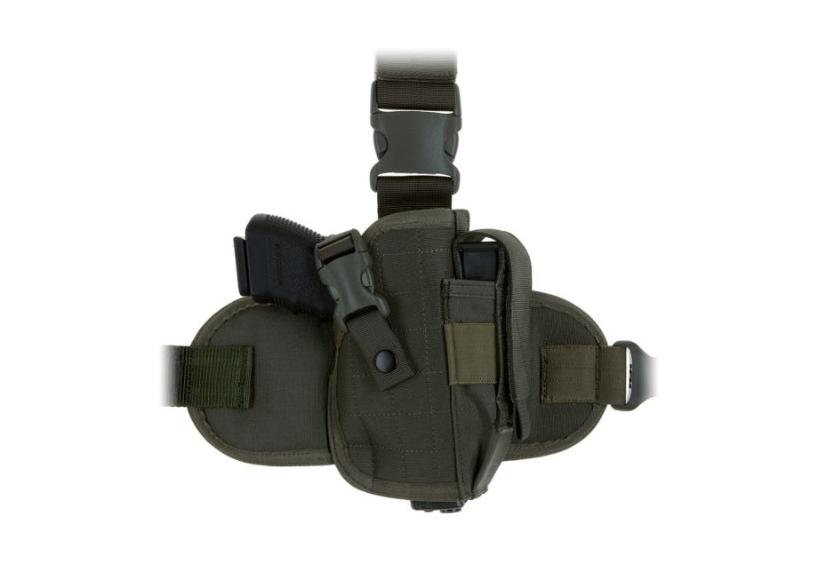 Univerzalna Dropleg futrola dizajnirana da u nju stane širok raspon pištolja srednje veličine poput primjerice Glocka 17 ili Berette 92.