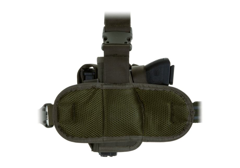 Opremljena je integriranim pouchem za spremnik i panelom za nogu - pričvršćen kopčom remena i tri neklizajuće elastične trake za bedro.