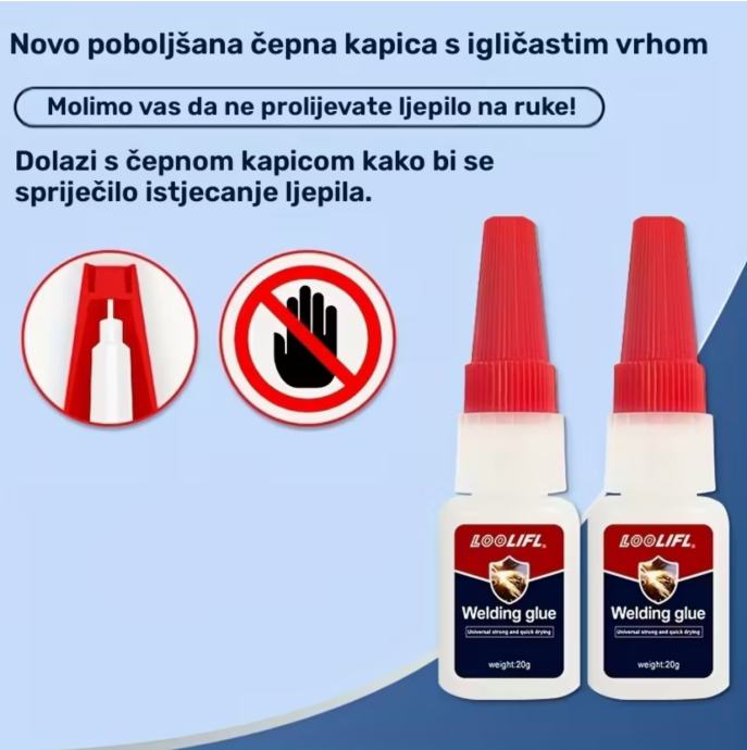 • Sigurnosna napomena: Ljepilo se izuzetno brzo lijepi za kožu,