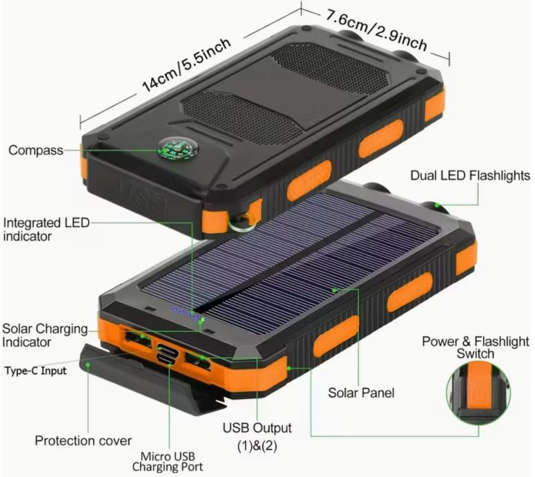 8000mAh Solarni Power Bank: Vaš Rezervni Izvor za Svaku Avanturu!