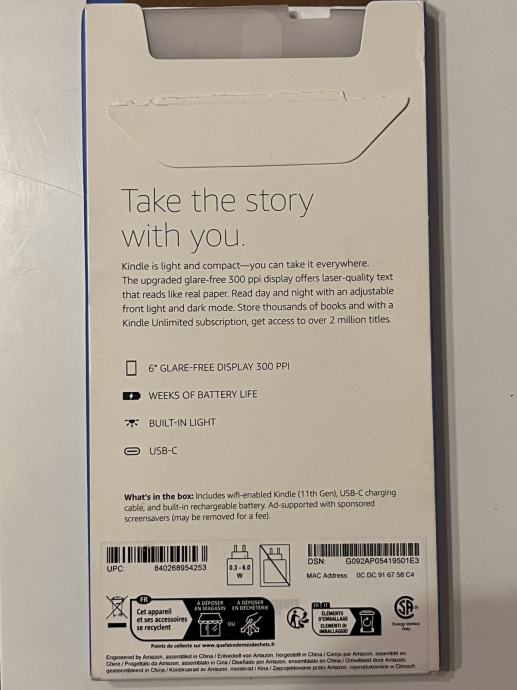 Zahvaljujući kompaktnom i laganom dizajnu, Kindle se može koristiti jednom rukom, a snažna baterija traje do 6 tjedana s jednim punjenjem putem USB-C priključka. S 16 GB prostora moguće je pohraniti tisuće knjiga, pa je cijela knjižnica uvijek uz vas.