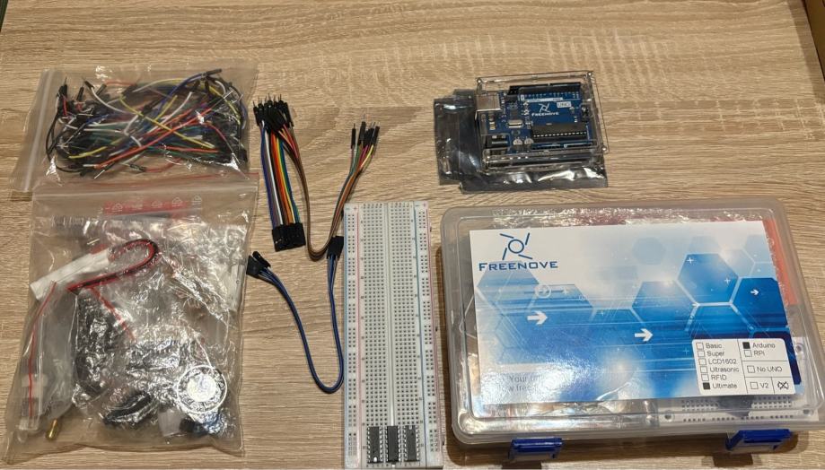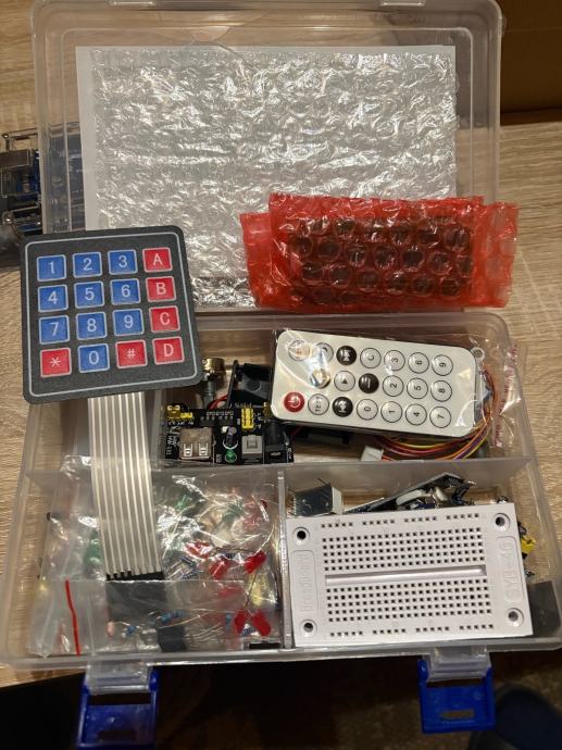 Prodajem odličan starter paket kopije Arduino Una (poznata kompanija Freenove, postoji kompletna dokumentacija i tutoriali na internetu/YouTubeu). Set nikada nije korišten jer imam 2, Uno je samo par puta korišten za upload firmwarea na 3D printer. Uz originalni set dajem i hrpu prekidača, senzora, chipova, veći protoboard i dodatne žice.