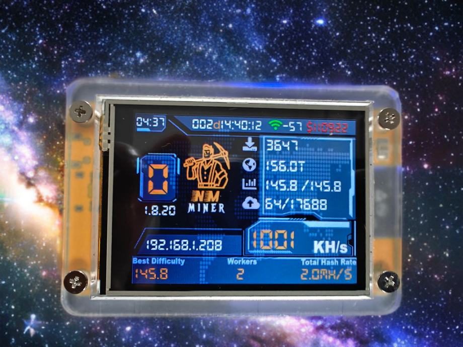 Bitcoin solo loto miner NerdMiner V2 2.8 inch Display