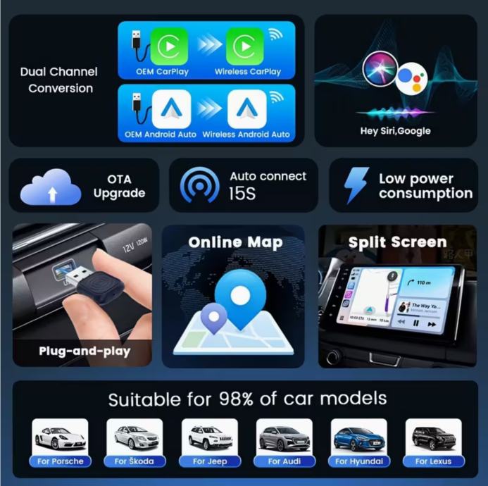 ⭐️CARLINKIT Mini Ultra 2-u-1 Bežični CarPlay i Android Auto Adapter⭐️