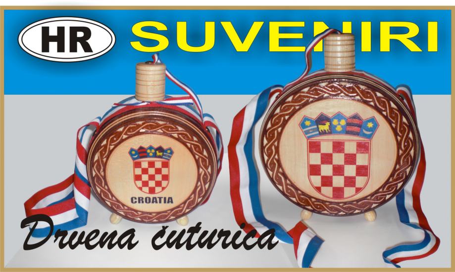 Kvalitetna drvena čuturica sa reljefnim pleterom i tiskanim grbom HR. Ručni rad, prirodno drvo, proizvedeno u HR.Ukrasni drveni čep, ispod originalni...............