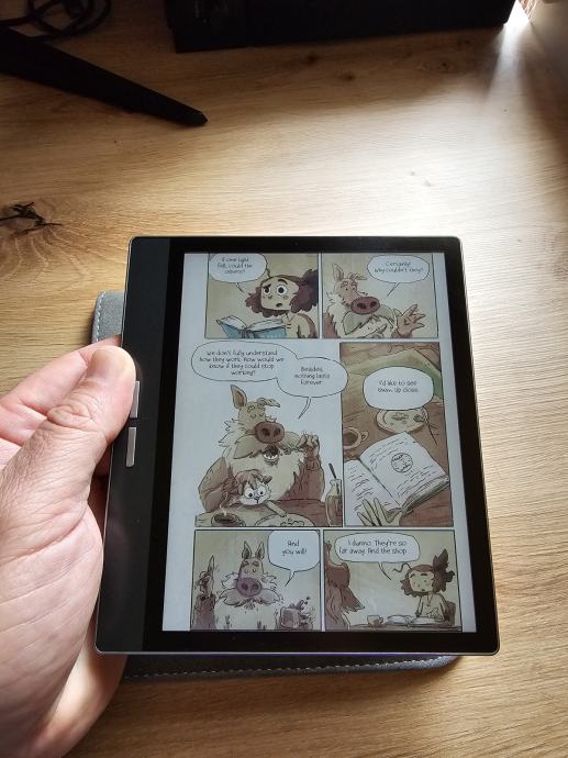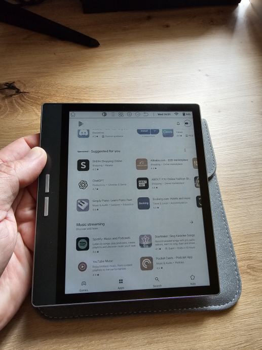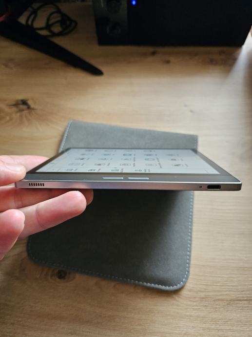 E-Book čitač Bigme B751C sa 7 inčnim Kaleido 3 e-ink ekranom u boji. Android operativni sustav tako da možete instalirati aplikacije kao i na mobitel/tablet. Korišten godinu dana, baterija je dobra. Puni se na USB-C kabel. Pogledajte moju recenziju u priloženom Youtube videu.