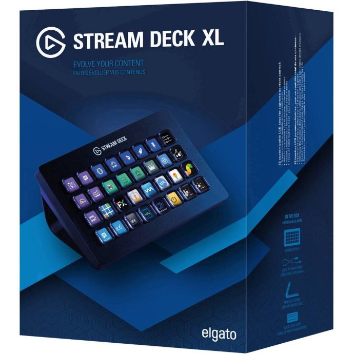 Stream Deck XL integrira vaše alate i pomaže u automatskom otkrivanju scena, medija i audio izvora, omogućujući da se njima upravlja dodirom tipke. 32 LCD tipke mogu se programirati za pokretanje niza radnji, dok vam taktilna operacija jednim dodirom omogućuje promjenu scena, pokretanje medija, podešavanje zvuka i još mnogo toga. Streamovi se također mogu personalizirati GIF-ovima, slikama, video zapisima, audio isječcima te uvodnom i krajnjom grafikom. Stream Deck je kompatibilan sa sustavom macOS 10.11 i novijim, kao i sa sustavom Windows 10 (64-bit). Povezivanje s vašim glavnim sustavom ostvaruje se korištenjem uključenog USB Type-C kabela na USB Type-A. Konačno, uključeno je podesivo postolje kako bi Stream Deck XL bio nadohvat ruke.