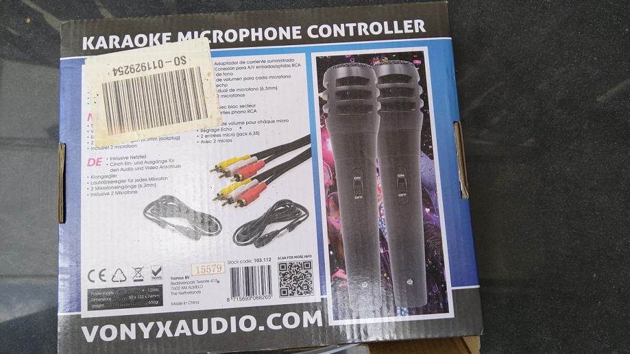 Set sadrži kontroler , 2 žična mikrofona , adapter i kablove za spajanje.