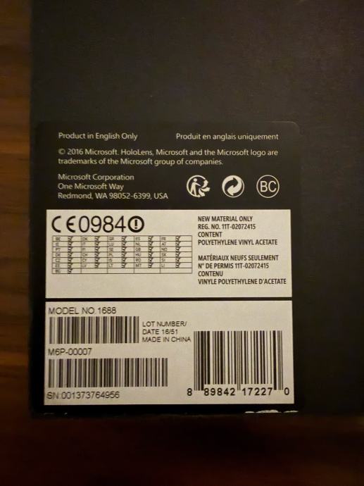 Prodajem Microsoft HoloLens 1. generacije (Model 1688).