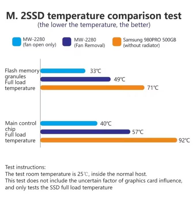 proizvoda, aktivno hlađenje može smanjiti temperaturu SSD-a za 20°C ili