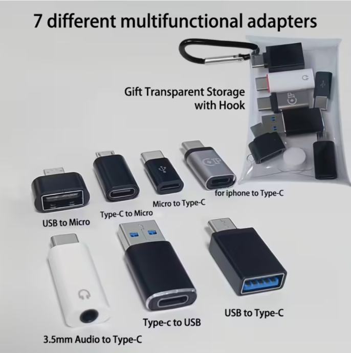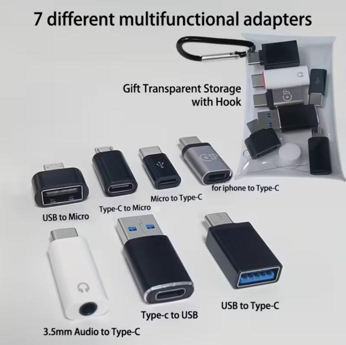 Paket od 7 USB adaptera Besplatna prozirna torba za