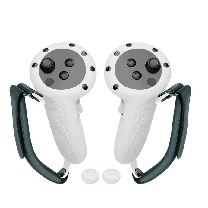 Prednosti: podesive knuckle trake, silikonska zaštita, kompatibilnost s Quest 3/3S, sigurnije držanje.