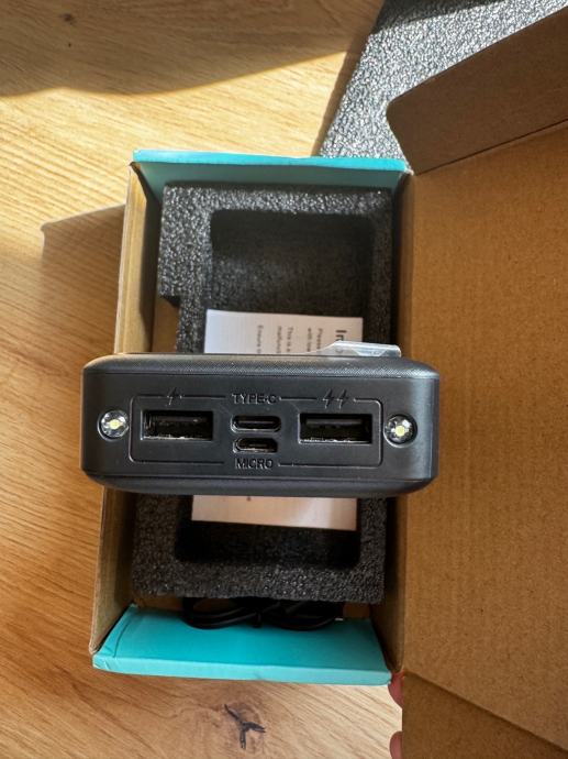 Uz to, powerbank ima ugrađeno LED svjetlo sa svake strane, što ga čini praktičnim i u situacijama kada je potrebna dodatna rasvjeta. Proizvod je nov, ali raspakiran. Dolazi u originalnom pakiranju.