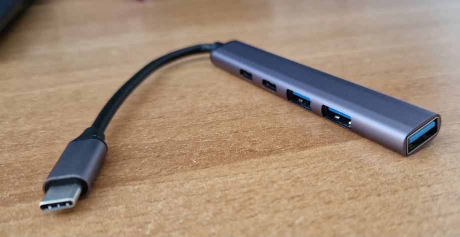 Uštekava se na utor type C, a ima izlaze type C (2 komada), usb 2.0 tip A, i jedan USB 3.0 tip A.