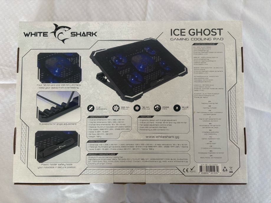 White Shark Ice Ghost Gaming Cooler Pad.