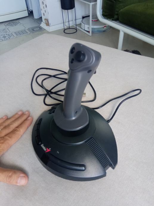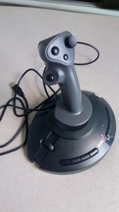 Skoro nekorišten. U original kutiji. USB sučelje, Windowsi ga odma prepoznaju. 4 osi i 8 tipki, 4 way hat.