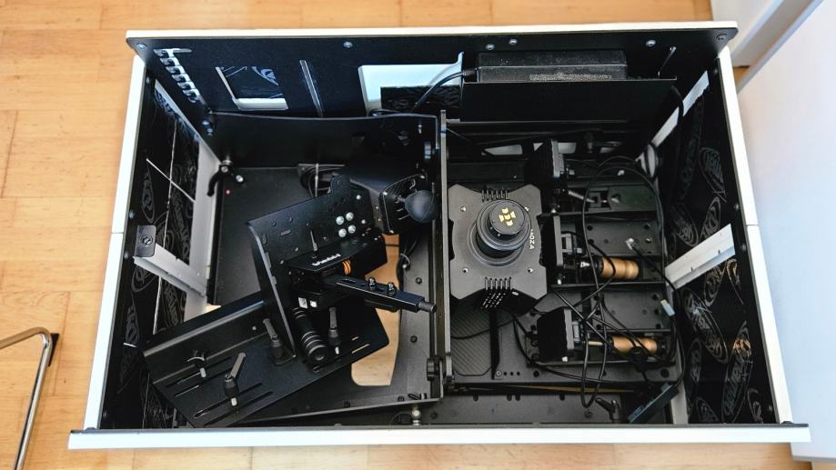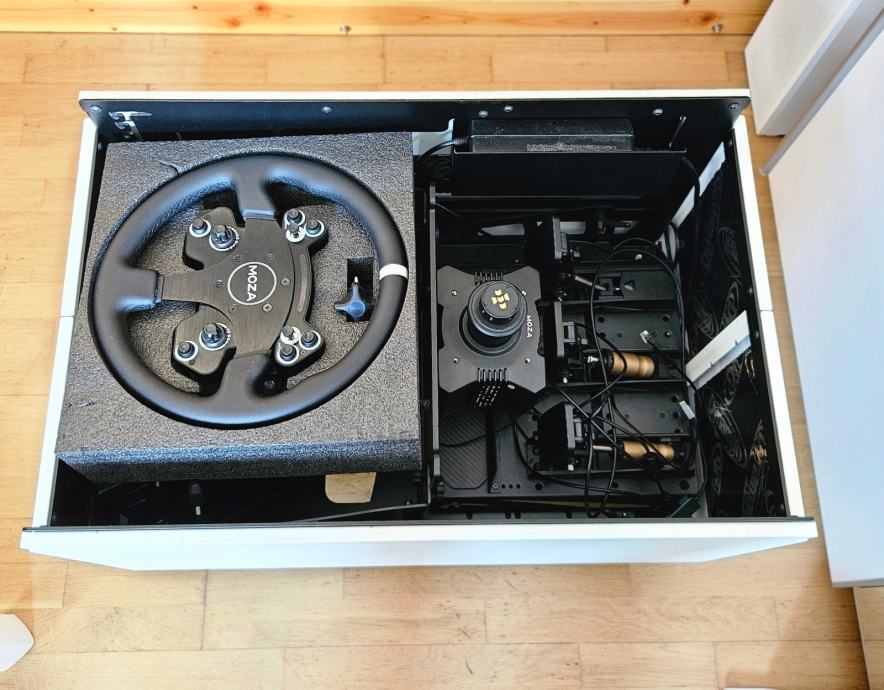 Prodajem kao nov kompletan simracing setup, posebno prilagođen manjim prostorima u kojima nije moguće imati dedicirani prostor za vožnju automobilskih simulacija.