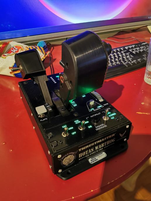 Prodajem HOTAS Thrustmaster warthog u odličnom stanju. Kupio sam ga novog prije godinu dana. Nema oštećenja, sve radi normalno. Napravio sam jedan mali mod na njemu, u joysticku sam popravio osjećaj u centru, tako da je više predvidljiv.