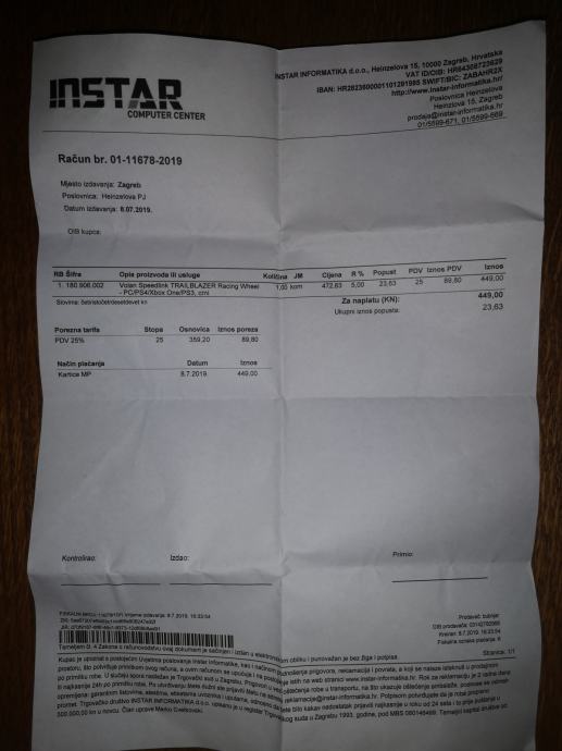 Volan, pedale, ambalaža, račun,
