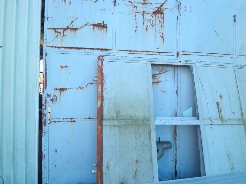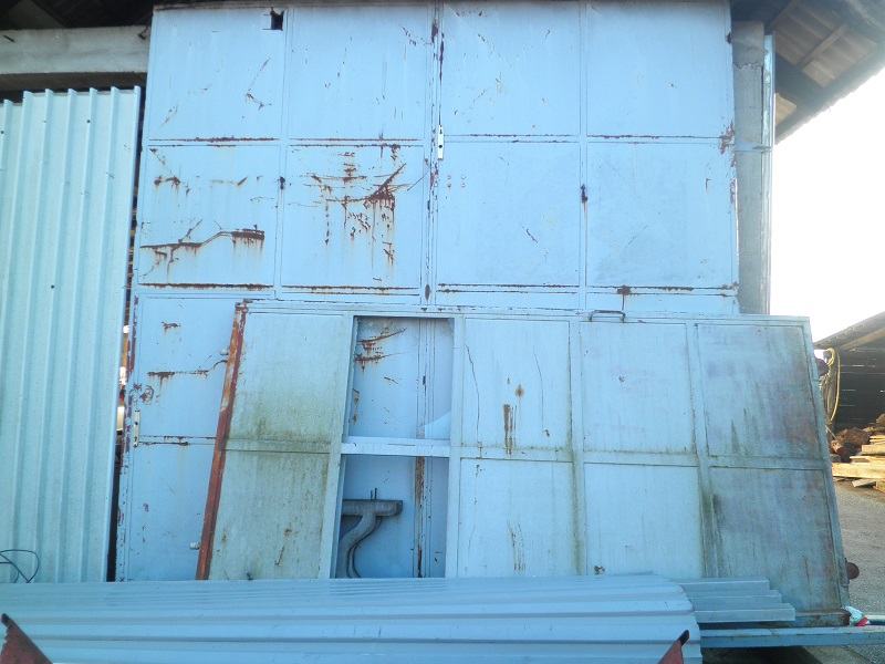Garažna vrata, svako krilo ima mala ulazna vrata, dupli lim, između izolacija kamena vuna, pogodno za hale