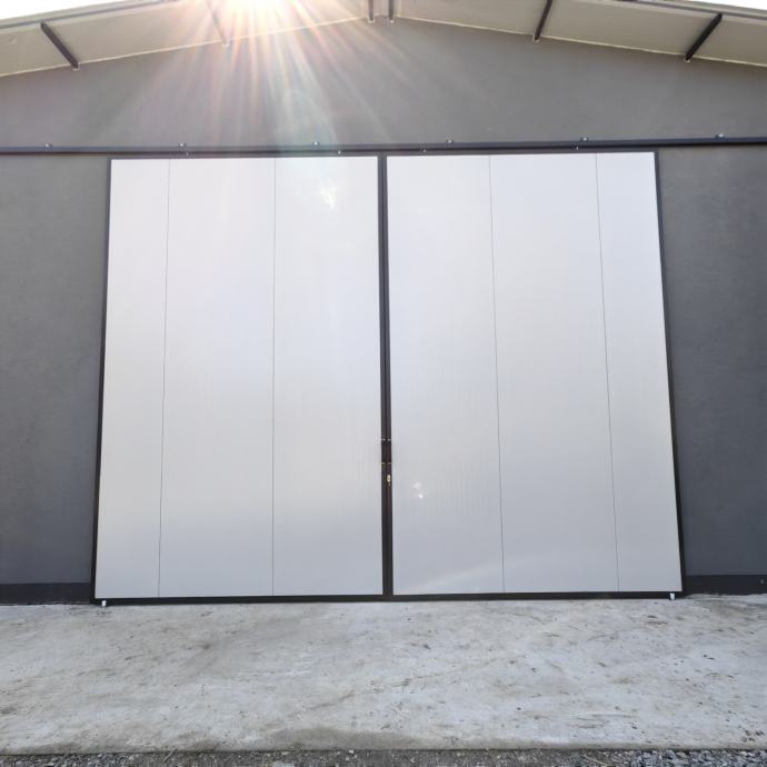 Garažna vrata(klizna). Izrađena od metalnih okvira te ispunom od termoizolacijskih panela