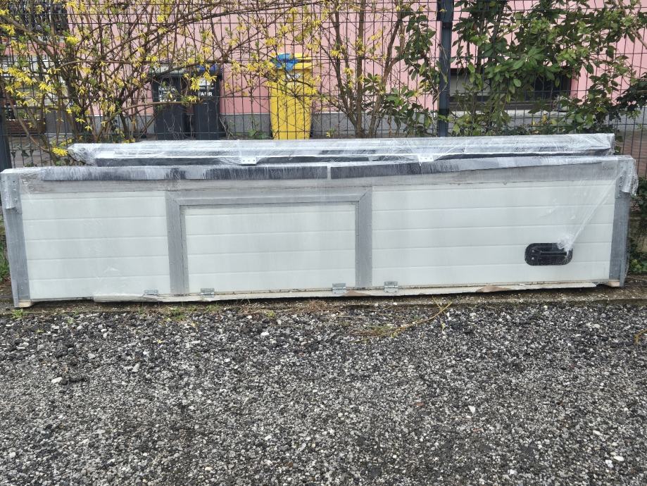 Prodajem garazna vrata s pjesackim vratima koja imaju pumpu na sebi za samozatvaranje.