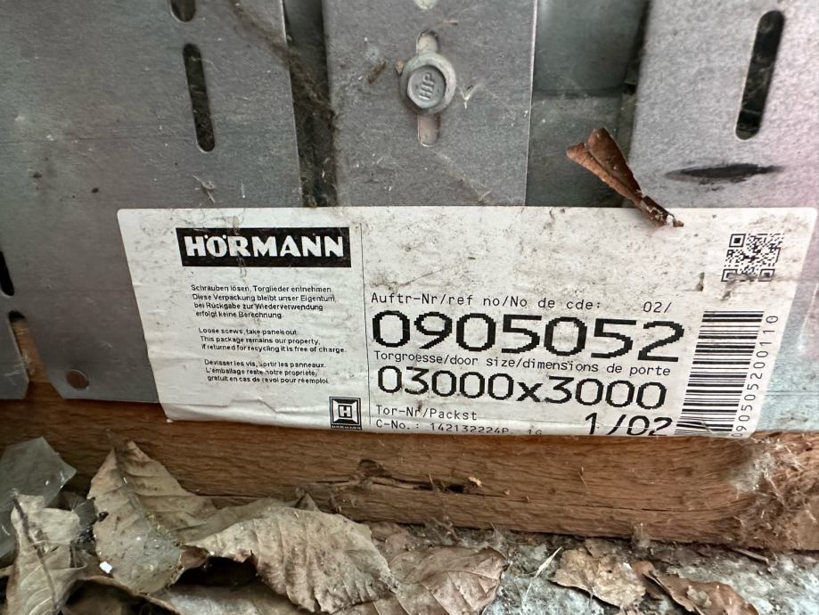 Garažna vrata Hormann 3000 x 3000 vertikalni ovjes nova nikad montirana