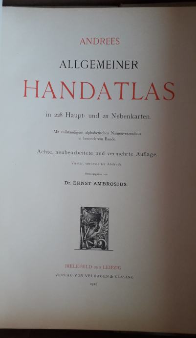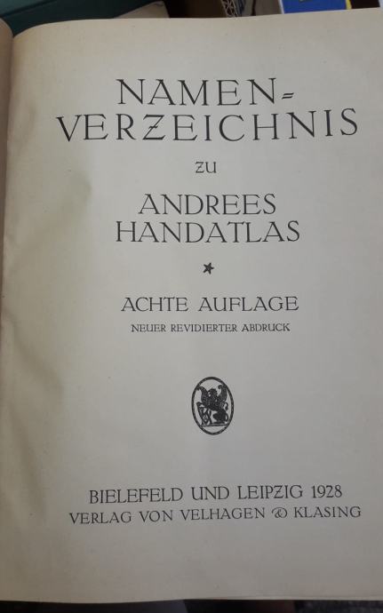 Andrees Allgemeiner Handatlas + Namenverzeichnis ( 1928.g. )