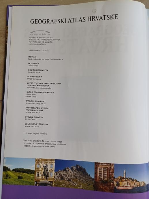 Prodajem Geografski Atlas Hrvatske. Tvrdi uvez, preko 170 stranica. Nije korištena, u odličnom stanju, kao novo.