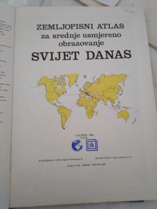 Povijesni atlas, Zg 1973,.... ZEMLJOPISNI ATLAS, SVIJET DANAS, za srednju, ZG 1988, .. ZEMLJOPISNI ATLAS za osnovnu, Zg 1994,.... ATLAS za srednje škole, Zg 1974.,.. . 4 eura po komadu